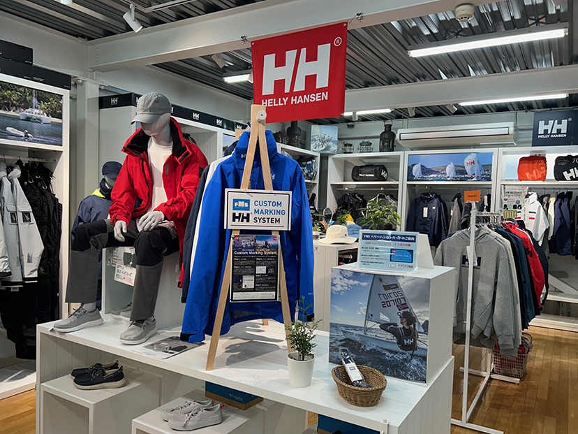 HHアウターウエア(各種マリン用ジャケット)のコーナーは人気のエスペリシリーズを中心に展開し、ベストタイプも用意していま す。全てマーキング対応商品で用意しています。