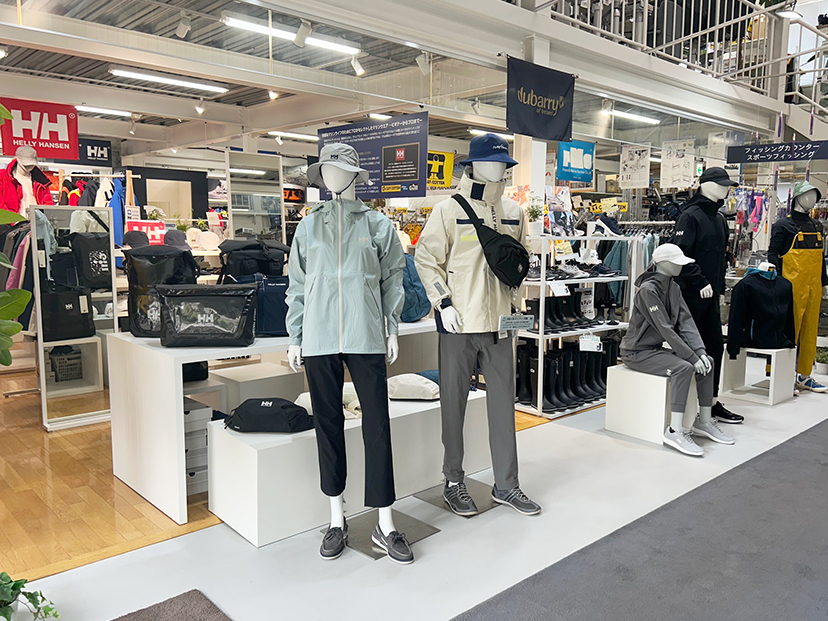 マリンウエアの売り場を92㎡に広げ、ブランド毎にマネキンを使って分かりやすくイメージを表現しています。