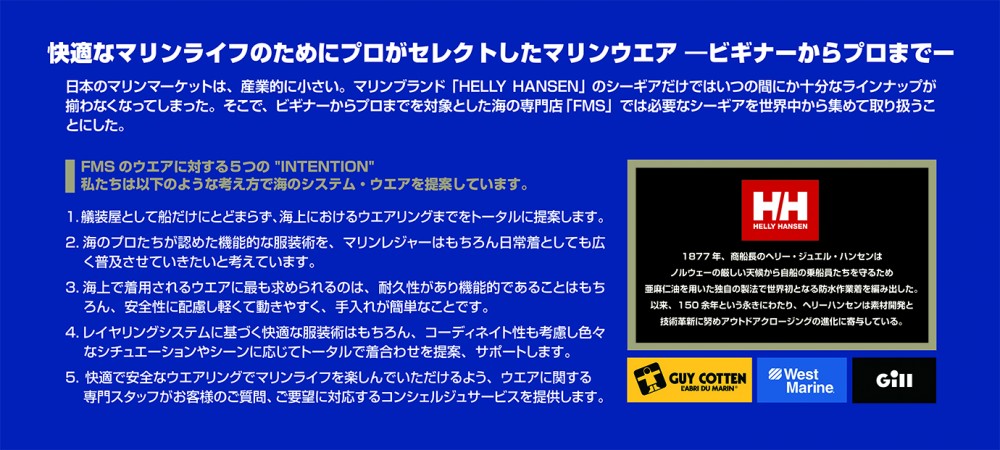 ずっと揚げてきた「INTENTION」。マリン業界を取り巻く状況の変化に伴い再考。海に携わる人をサポートするというFMSのポリシーはそのままに。