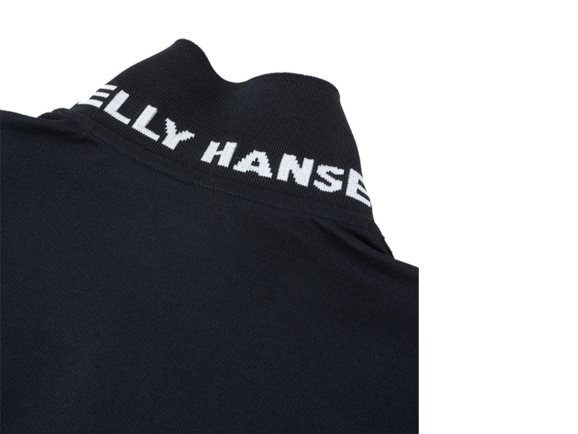 強い日差しの中での長時間活動に対応できるUVプロテクト(UPF50+、紫外線カット率95%以上)機能付き。襟裏は、ブランドロゴを編みたてたリブ仕様になっています。