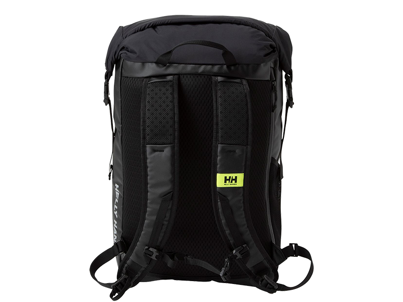フロントに配した大きなクリアウィンドウがアイコニックなバックパック。通勤や通学などのデイリーユースがしやすい30Lの容量です。メイン生地として、丈夫なポリエステルオックスの生地を採用。PVC加工を施すことで、耐久性を高めています。光沢感のある生地で、フロントパネルには光沢がより強い面を、サイドパネルには控えめな光沢の面を使い、さりげない遊び心をプラスしました。メインコンパートメントには、14インチ程度まで対応できるPCスリーブを配置。開閉部はロールトップタイプで、サイドでもトップでもバックルにて固定が可能。メインコンパートメントには、背面に配したファスナーを開け、サイドからもアクセスできます。背面フォームは、通気性が高いエアメッシュ仕様です。フロントのクリアウィンドウはフラップポケット型になっており、中に入れたものが見えるデザイン。シーギアを手がけるHELLY HANSENらしい、チャート(海図)をすぐに確認するためのポケットから着想したデザインで、見せる収納が楽しめます。クリアウィンドウ内には、キーループを配置。フロントとサイドのロゴは、視認性を高めるリフレクト仕様です。ショルダーハーネスのアジャスト部分は、テープ端が垂れず、すっきり見えるよう仕上げました。