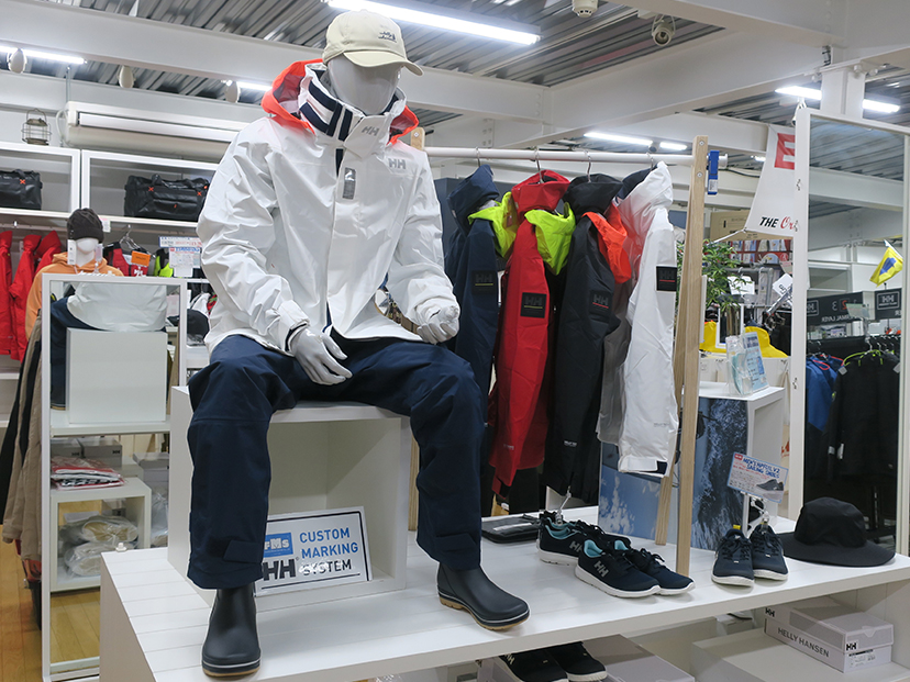 総売り場面積560㎡(約170坪)の店内にヨット・ボート・漁船・遊漁船を対象にした艤装品、 マリン用品、フィッシング用品、ウエア他12,000種類を超えるアイテムを幅広く展開します。