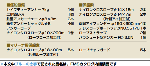※本文中ブルーの太字で記された品名は、FMSカタログ内艤装品です。