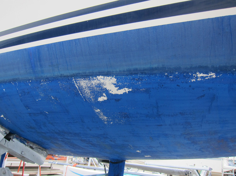 「中古艇の購入は現状渡し」という契約条件だったにも関わらず、購入の前に上架して船底をチェックしなかった責任は私にありました。30分で症状が出てきたわけですから上架していれば気がついたはずです。原因はやはりペーパーがけをせず塗装し、さらに完全に乾かさないで下架したことでした。