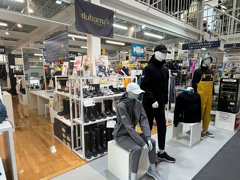 マリンウエアの売り場を92㎡に広げ、ブランド毎にマネキンを使って分かりやすくイメージを表現しています。