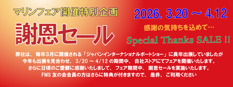 弊社は毎年3月に開催される「ジャパンインターナショナルボートショー」に長年出展していましたが、今年も出展を見合わせ、3月20日~4月12日の期間中、自社ストアにてフェアを開催いたします。