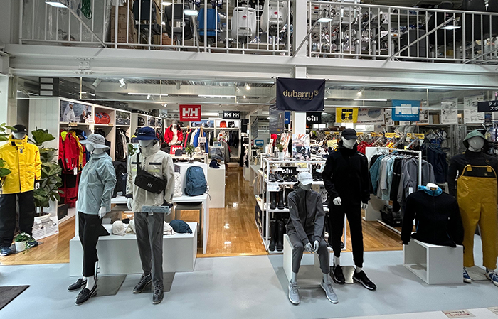 1階の「ヘリーハンセン」コーナーでは、シーギアを中心に展開しています。