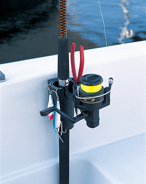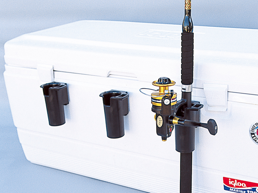 ホルダーがワンタッチ脱着できるよう考案され、フックホール3個、プライヤーポケット付という機能を備え登場。マイボートのあらゆる場所に装備しやすく、クーラーボックスほか船への搭載物にも利用できます。