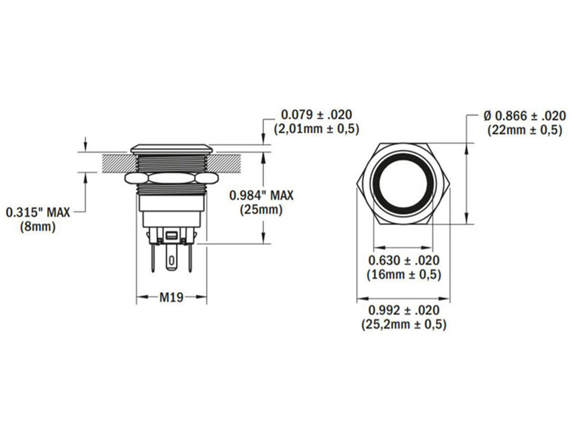 電流容量12V-10A、防水性能IP67、取付穴径19㎜