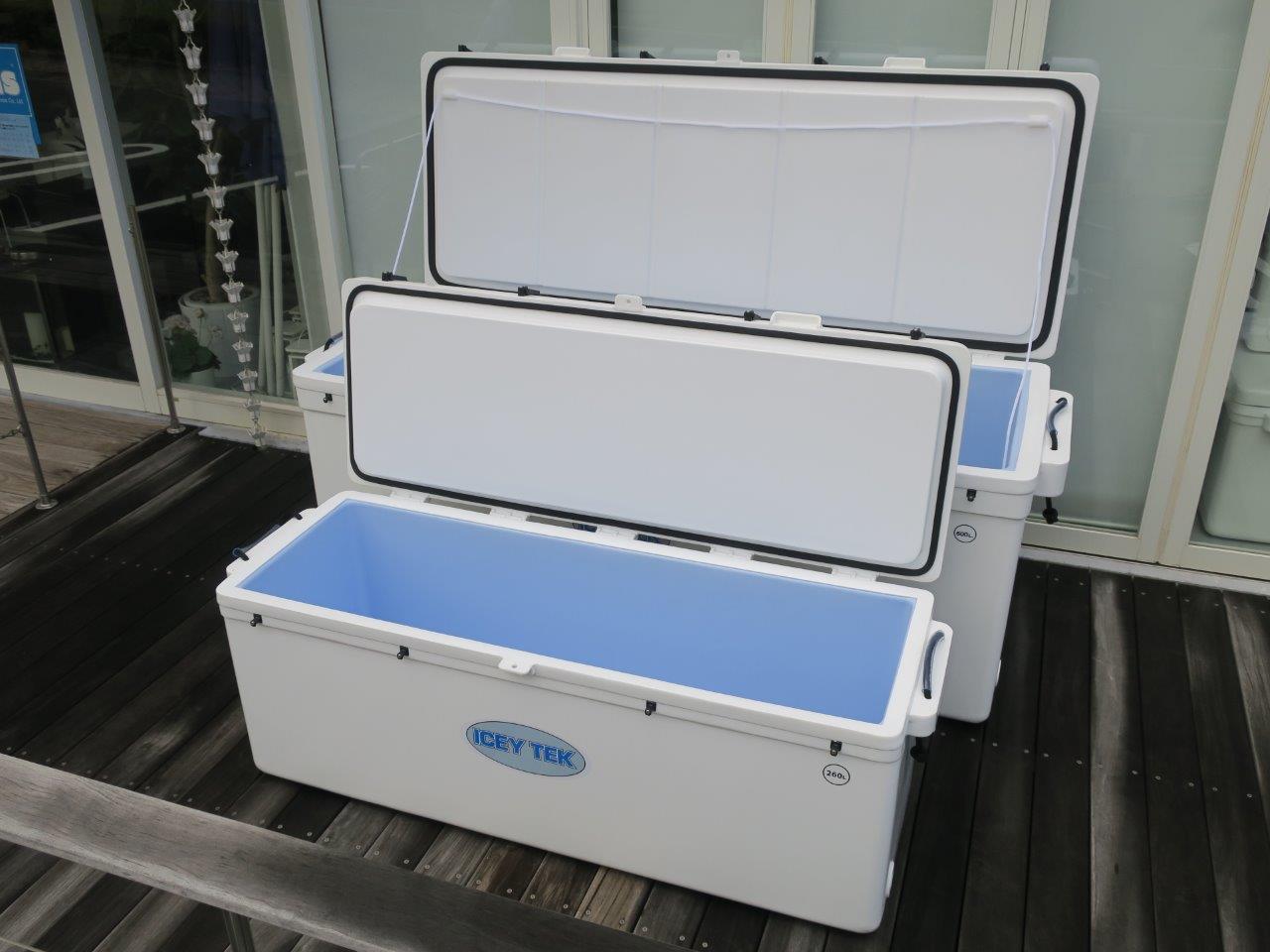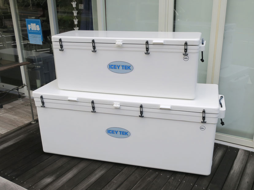 ICEY-TEK社が製造するアイスボックスが世界で認められている理由は、耐久力のあるポリエチレン製素材に断熱効果がある特殊な断熱充填剤を使用し軽くて丈夫で保冷力に優れたアイスボックスを提供しているためです。また、世界中のマリンレジャーや水産業界に販売しているため、生産量も多く安価に提供できる点も魅力です。FMSは最も販売量の多いロング型とキューブ型アイスボックスを中心に皆様に提供していきます。
